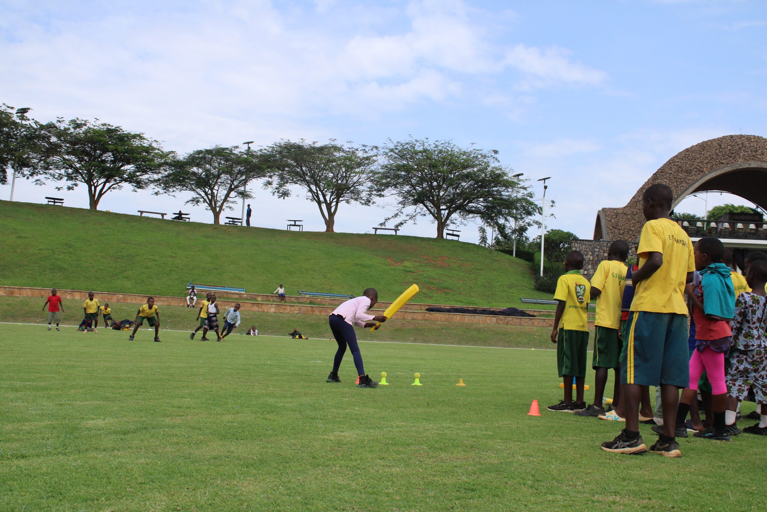 o Children from the Kura Neza Child Program join every Saturday at Gahanga Cricket Stadium for cricket and English sessions.